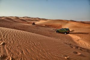 The conventional wisdom says that travel to the Empty Quarter is no “joke” dangerous, and requires serious preparation with at least three four-wheel-drive vehicles to complete the journey. This is a standard desert off-road driving practice which ensures that if one of the cars gets stuck in the sand, which is pretty much inevitable, the second car can pull it free. If the second car gets stuck, the third can get everyone out safely.