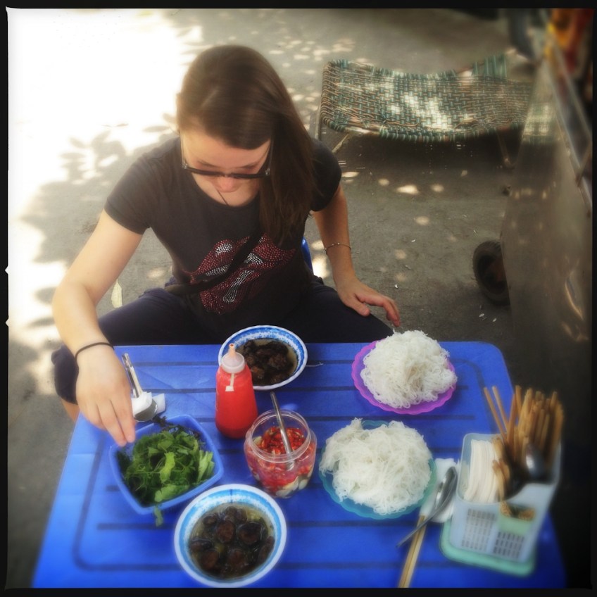 Kaire prepares her bun cha.